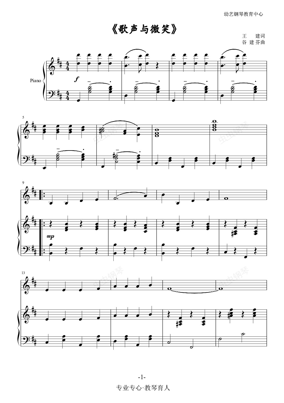 钢琴谱:歌声与微笑(D调)合唱伴奏