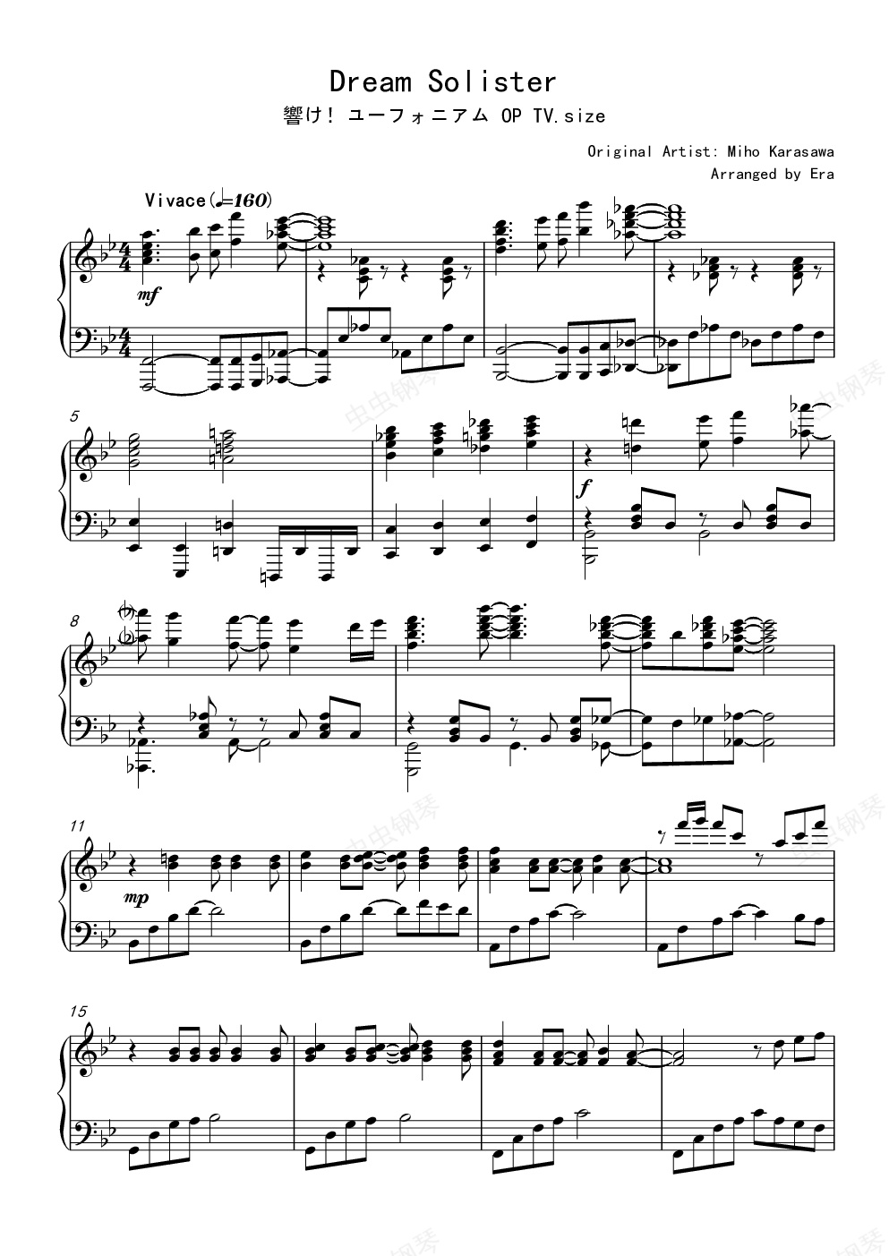 钢琴谱:【吹响! 上低音号】OP Dream Solister TV size