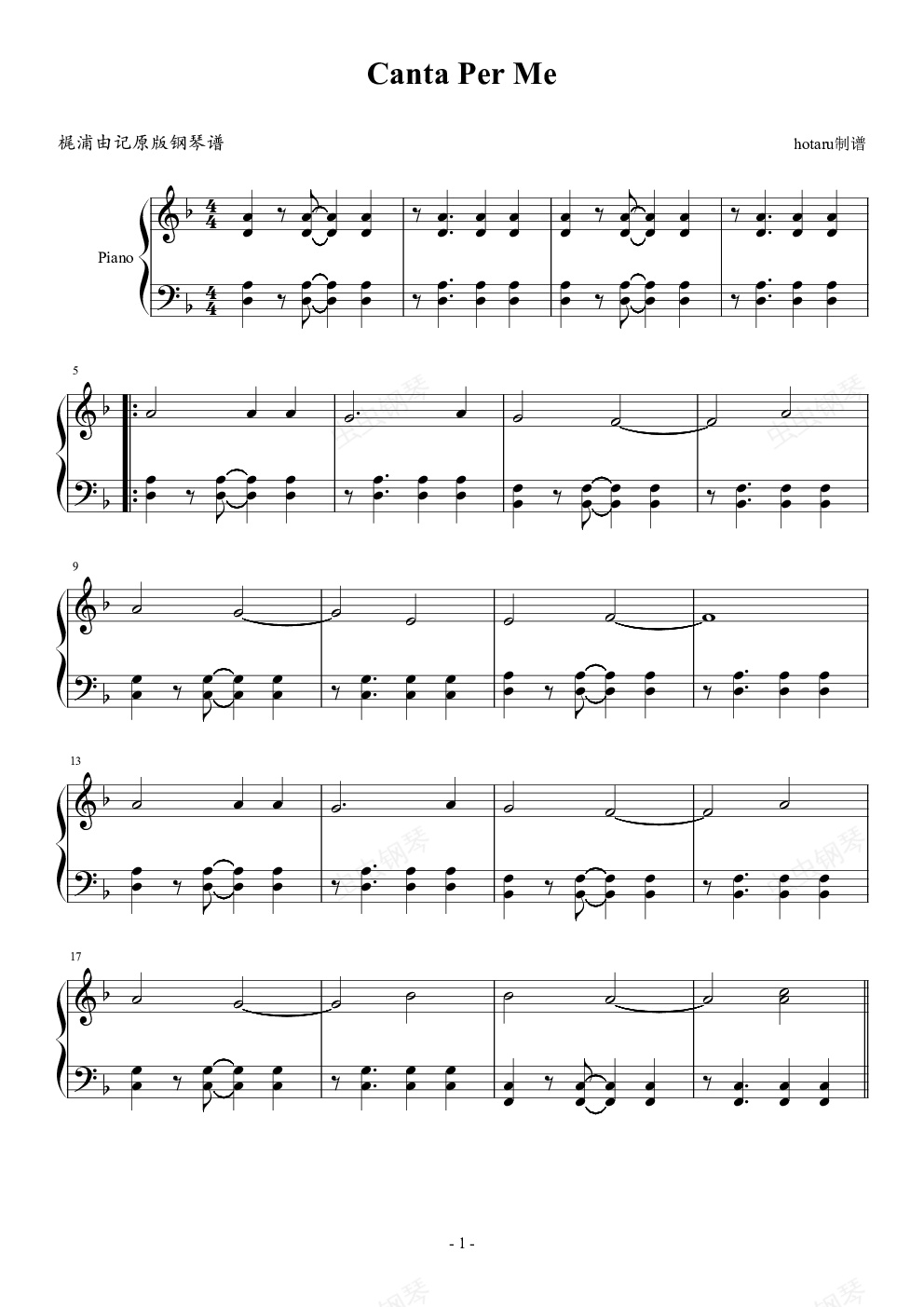 钢琴谱:Canta per me -梶浦由記