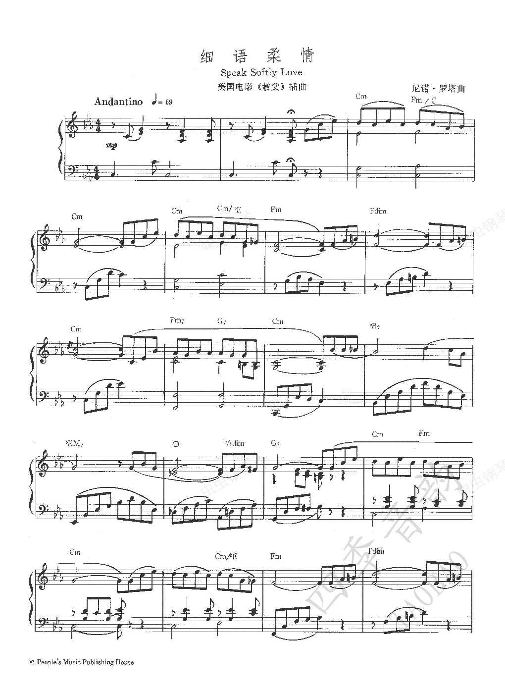 钢琴谱:Speak Softly Love