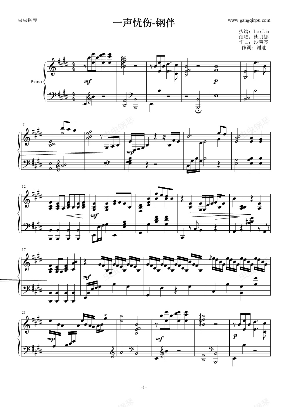 姚贝娜演唱的《一声忧伤》是我听过纯钢伴的最出色的曲子之一,我也很喜欢,分享给大家。网上都找不到,于是我就自己扒了,当然不忘记分享啦!