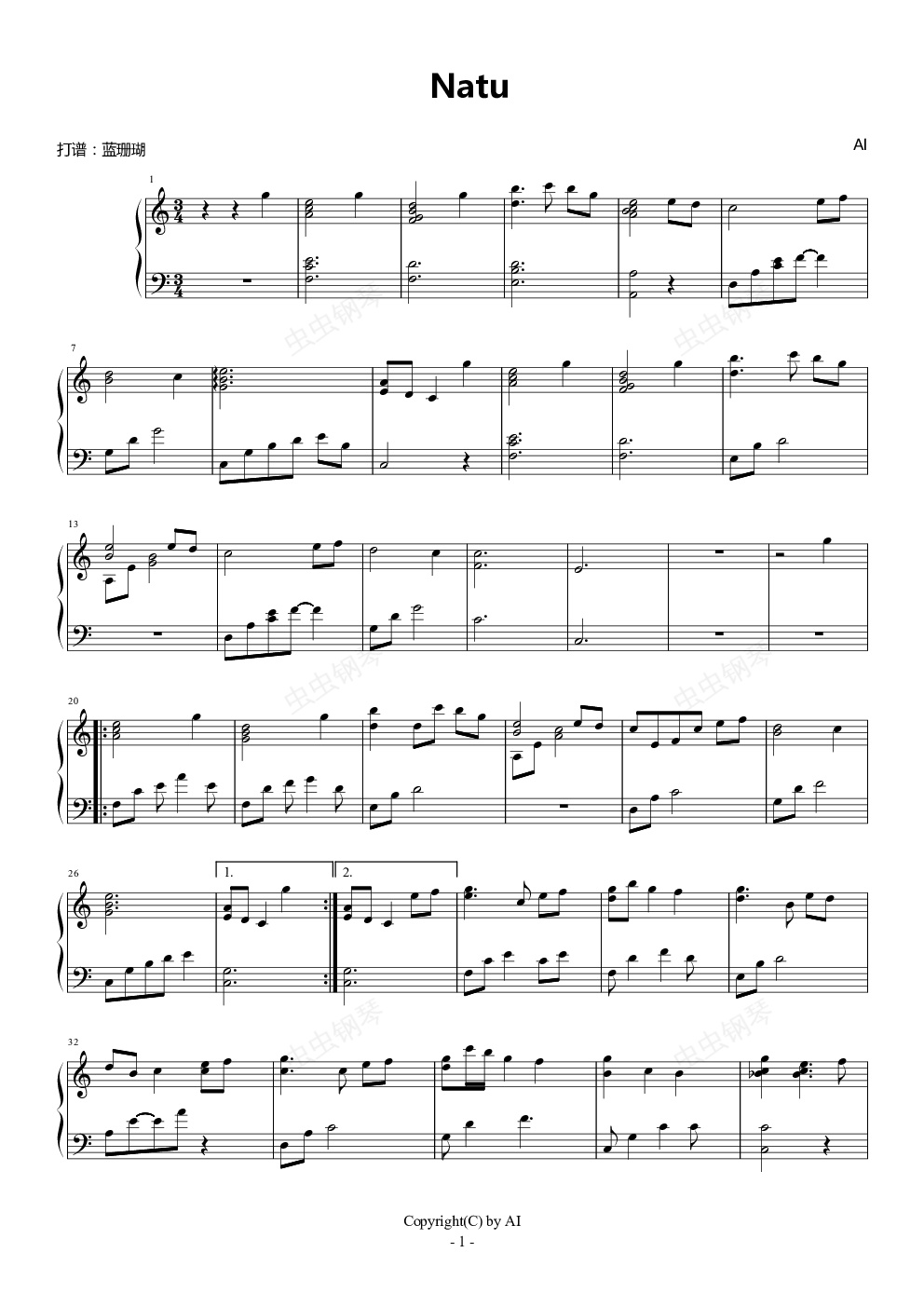 钢琴谱:Natu 夏 - 藤岛裕之/AI