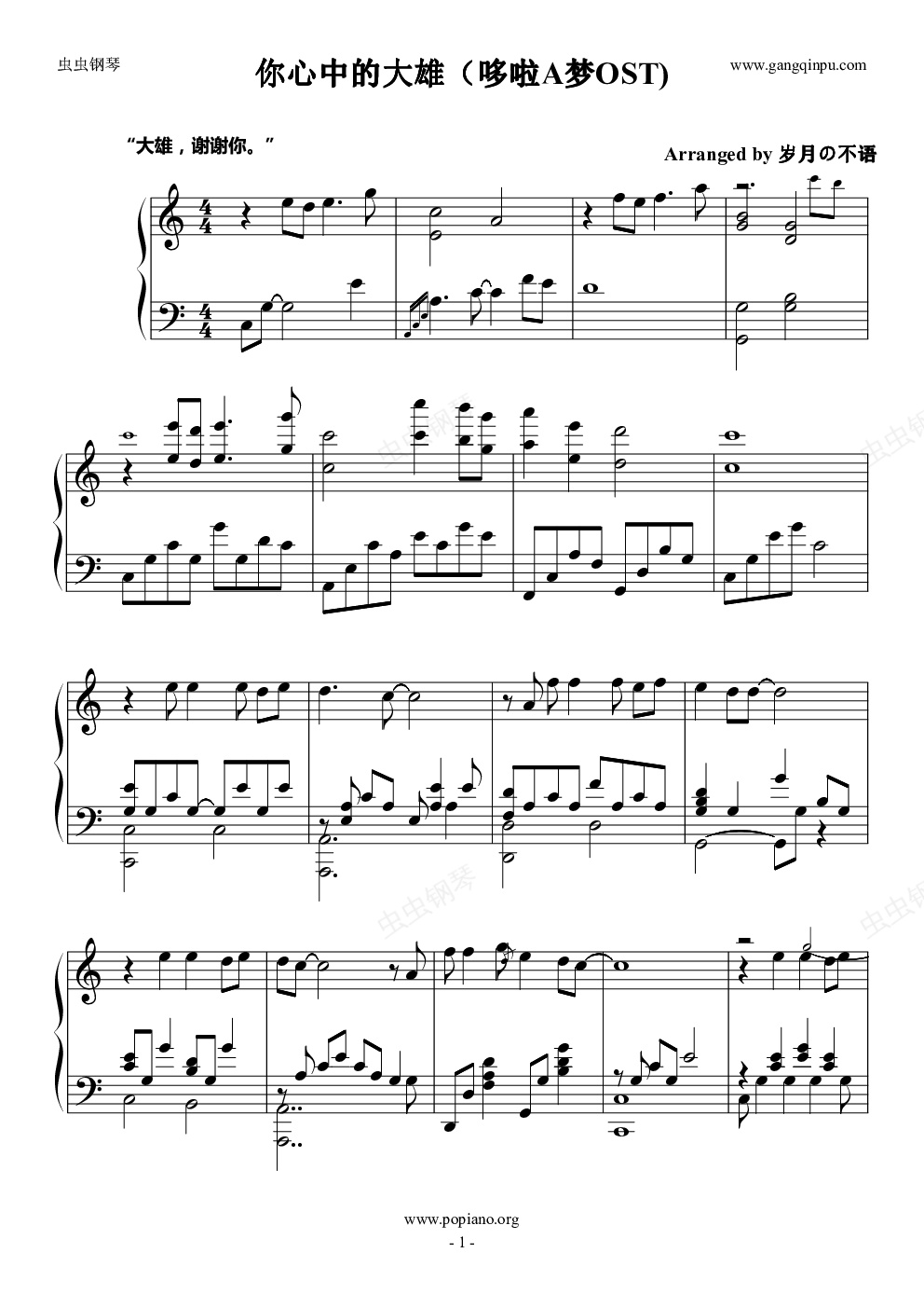 本次创作采用了多声部共鸣震荡,尝试着用类似交响乐的姿态,去演绎流转在曲中的感伤回忆、无限希冀。哆啦A梦,随着岁月小船的飘逝,成了童年的信条,记录着单薄飞扬的曾经。无论曲终,亦或人散,多少,深深浅浅的情绪碎片总会弥留心底。不会变质。不会腐烂。愿岁月将其珍藏,微笑向暖,不诉离殇。另外,歌曲《你心中的大雄》(キミのなかののび太)是《<哆啦A梦>新番》(在《再见,哆啦A梦》《爱上大雄的精灵》等短片中播放过)的插曲。歌曲曲风低回婉转,唯美文艺,歌词感人肺腑、催人泪下。