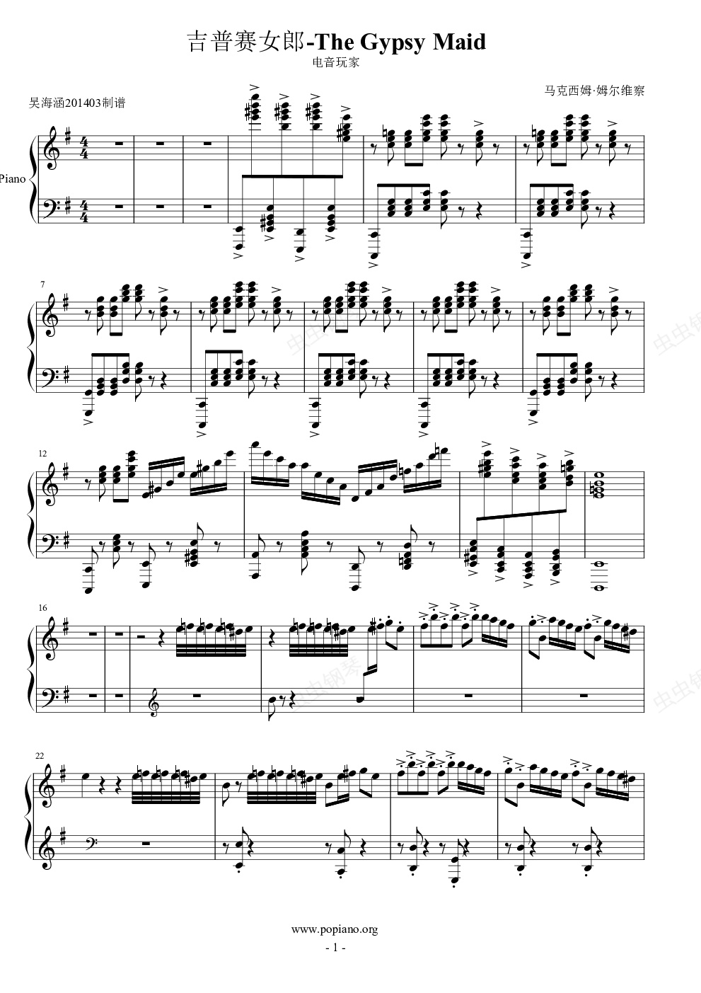 钢琴谱:吉普赛女郎-The Gypsy Maid-马克西姆