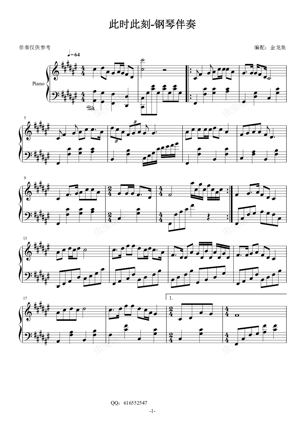钢琴谱:此时此刻-钢琴伴奏(金龙鱼)