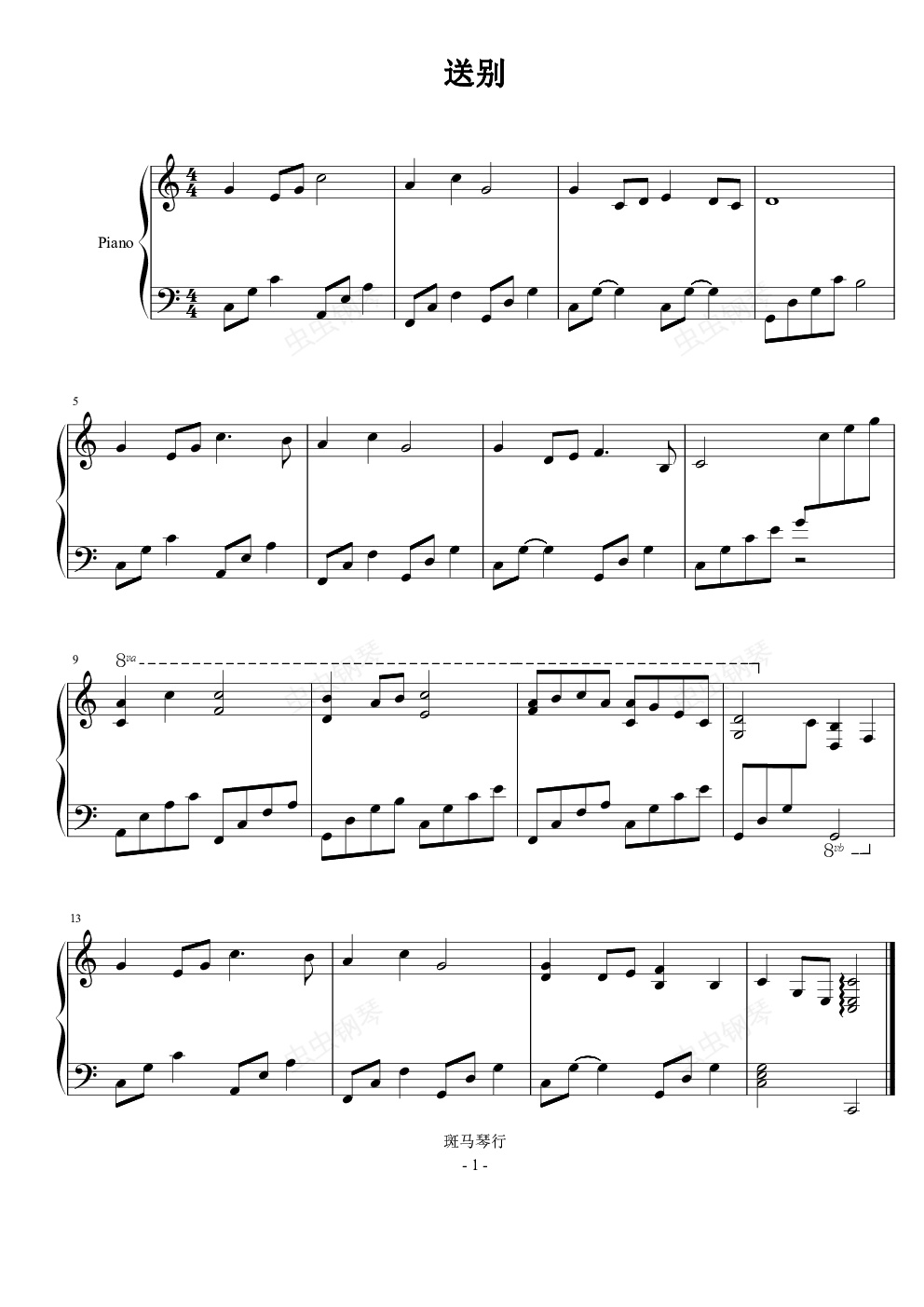钢琴谱:送别