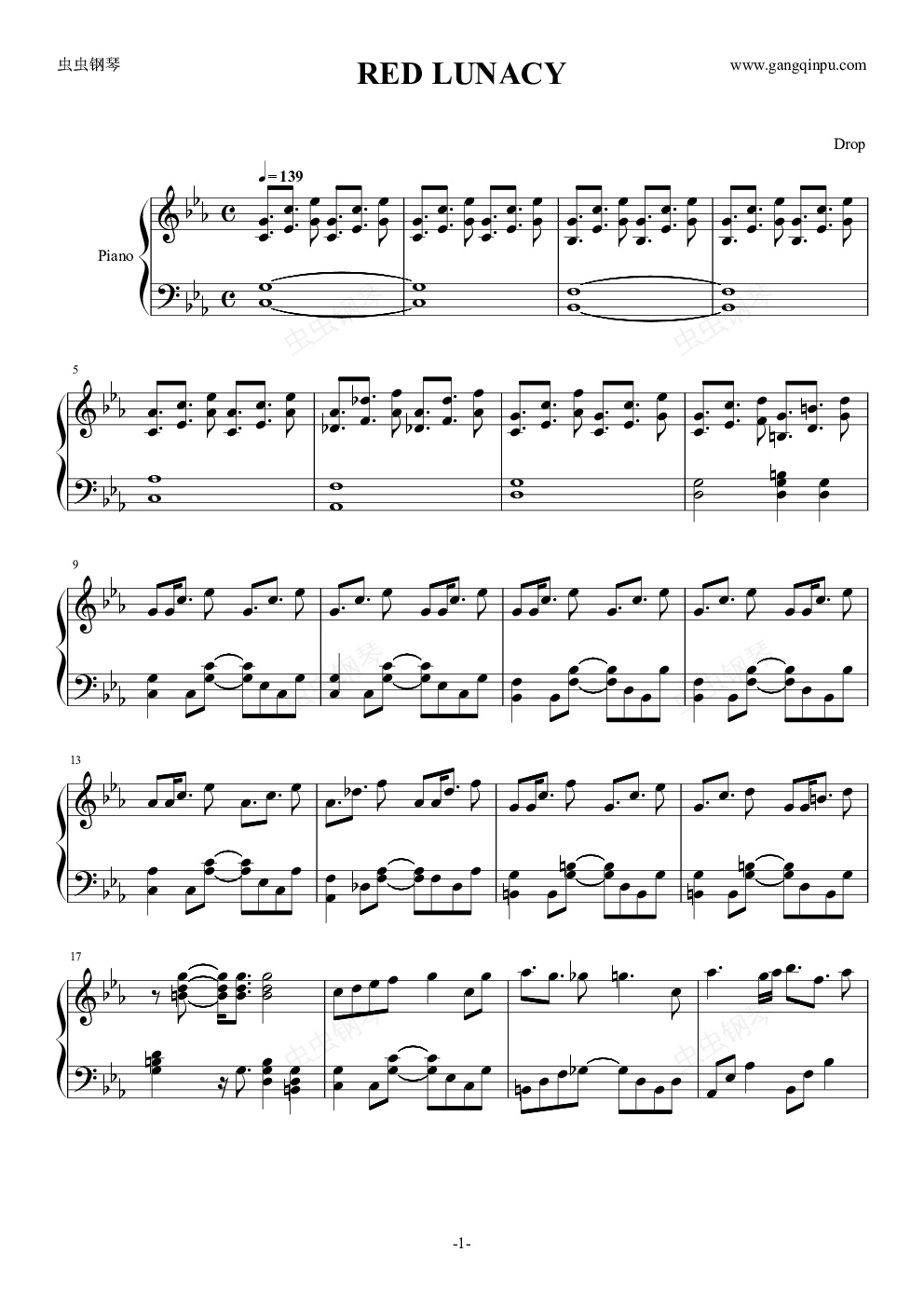 钢琴谱:【葉月ゆら】RED LUNACY short.