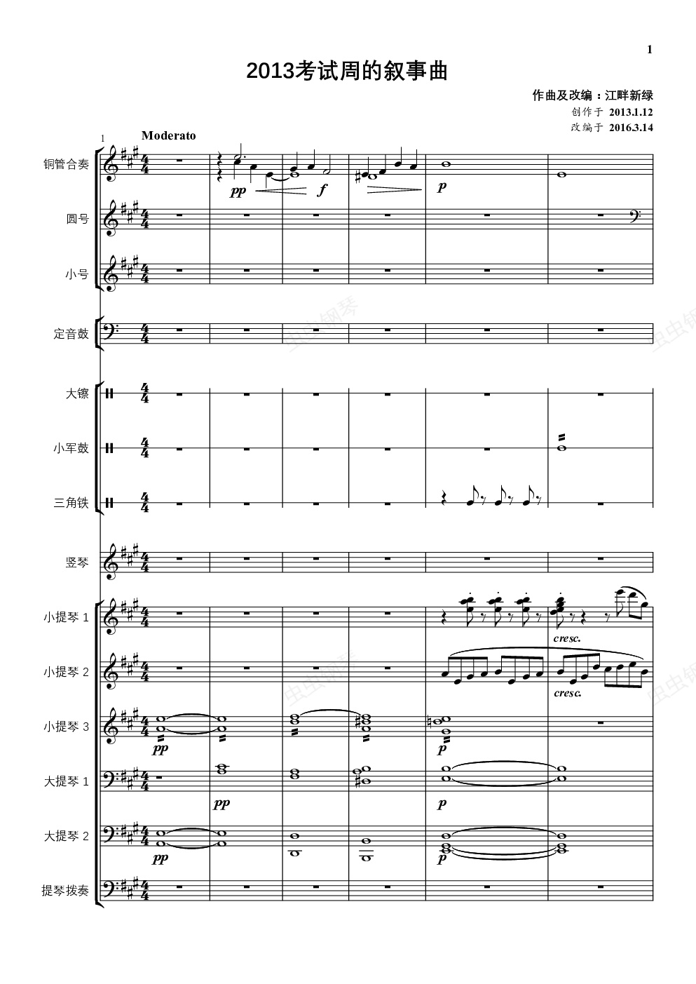 钢琴谱:2013考试周的叙事曲(管弦乐重编曲版)