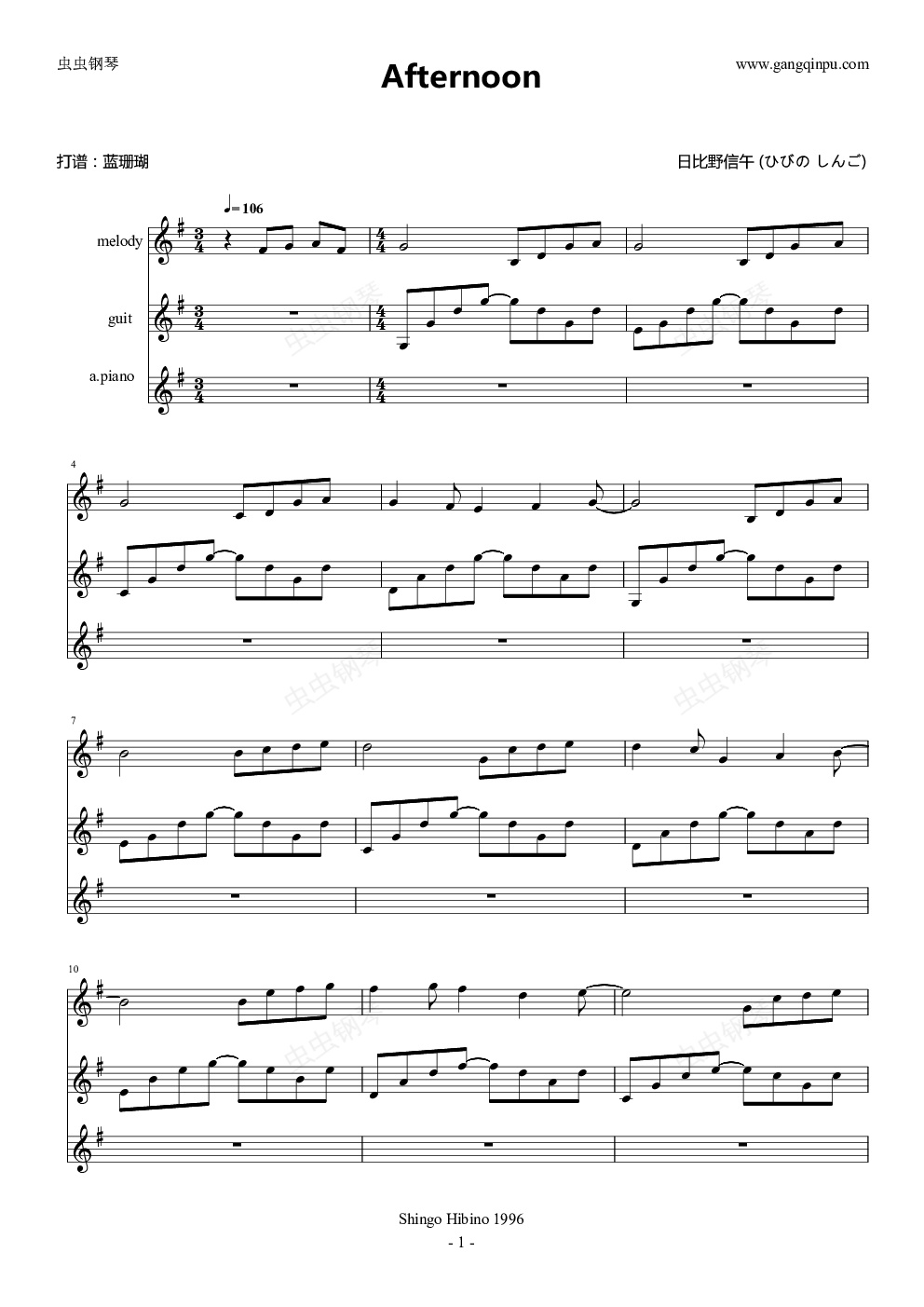钢琴谱:Afternoon - 藤岛裕之/AI