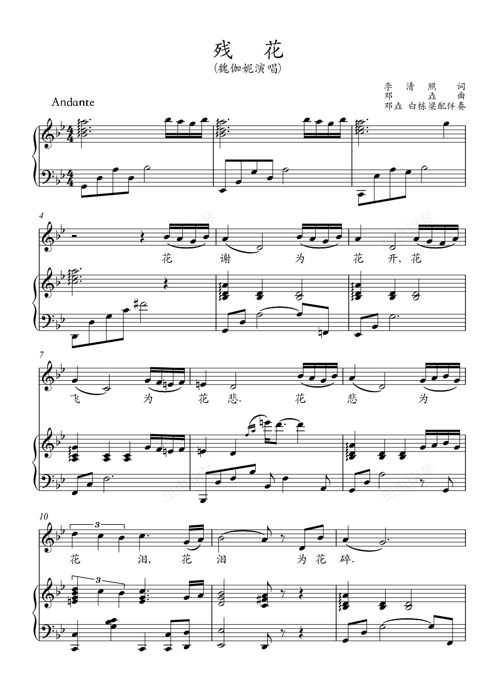 钢琴谱:歌曲《残花》钢琴伴奏谱正谱