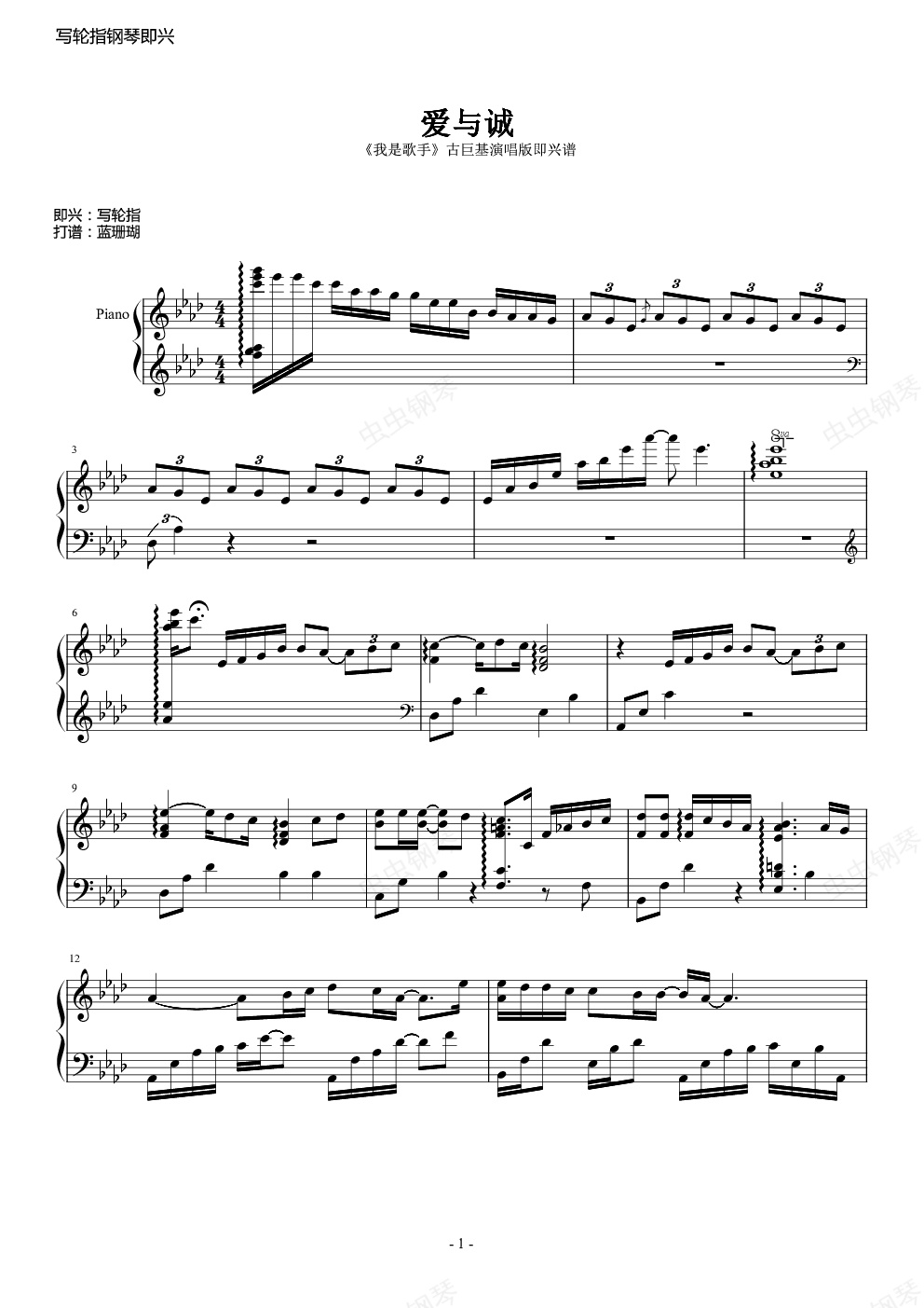 钢琴谱:《爱与诚》我是歌手 写轮指即兴版