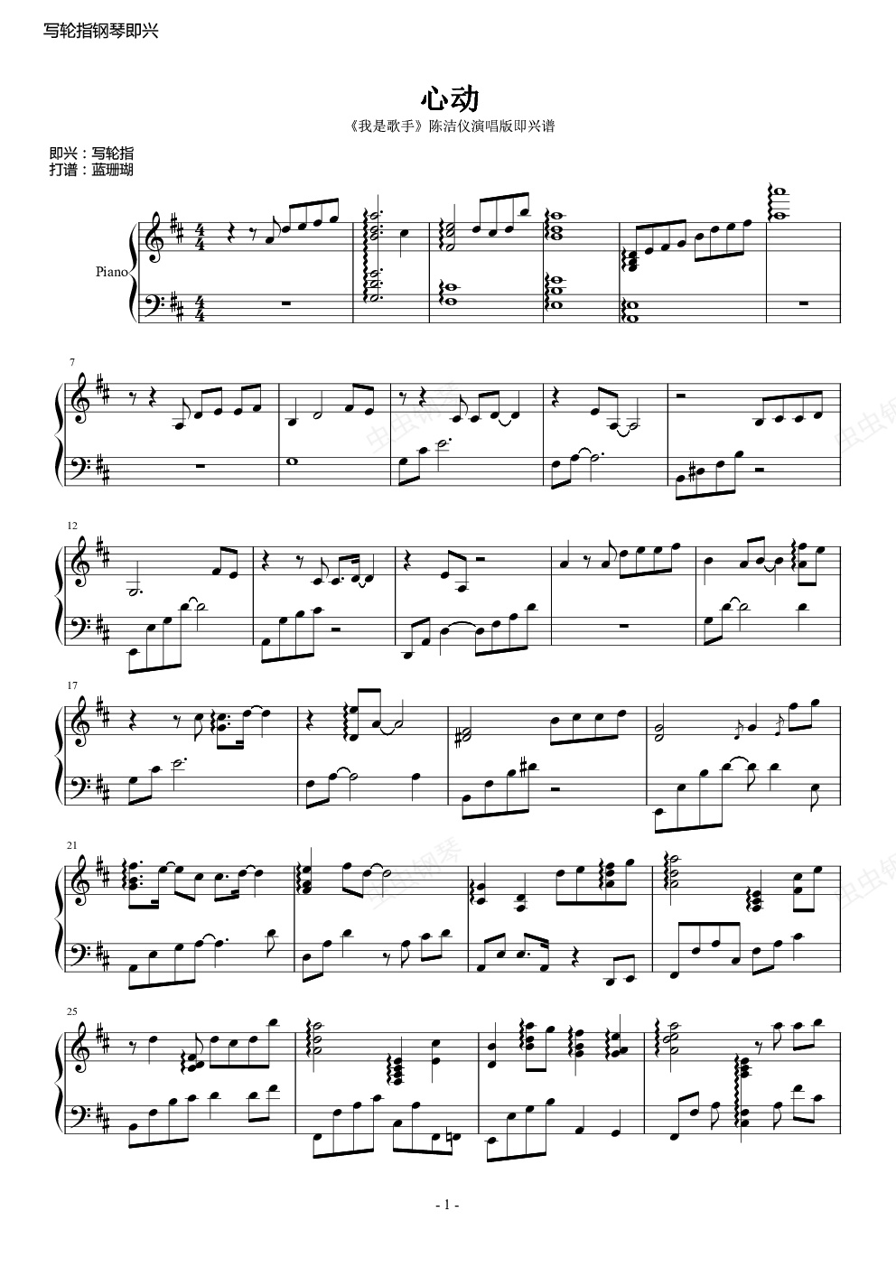 钢琴谱:《心动》我是歌手 写轮指即兴版