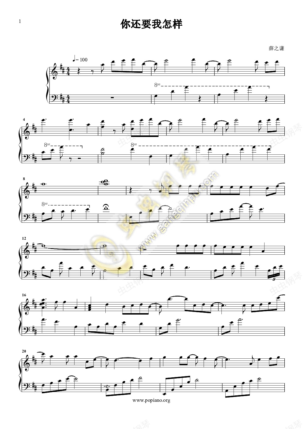 钢琴谱:你还要我怎样