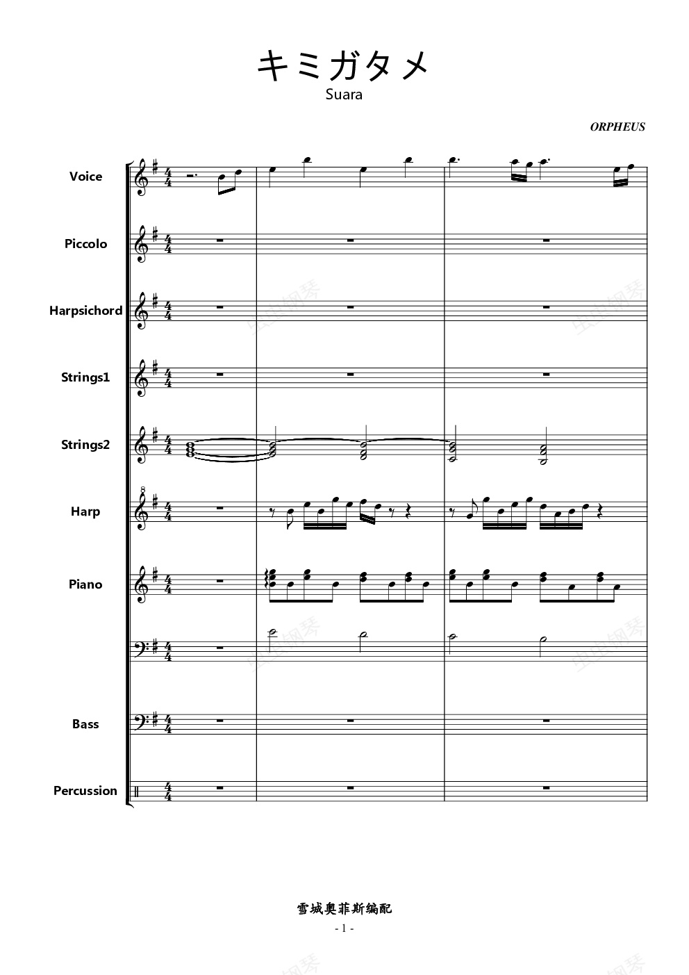 钢琴谱:キミガタメ (总谱)