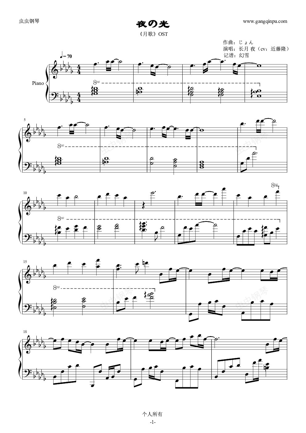 钢琴谱:夜の光(《月歌》「ツキウタ。」Piano arrange Ver.)