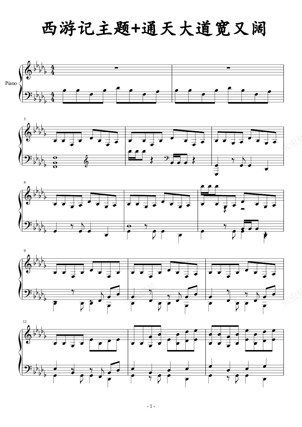 钢琴谱:西游记主题曲+插曲