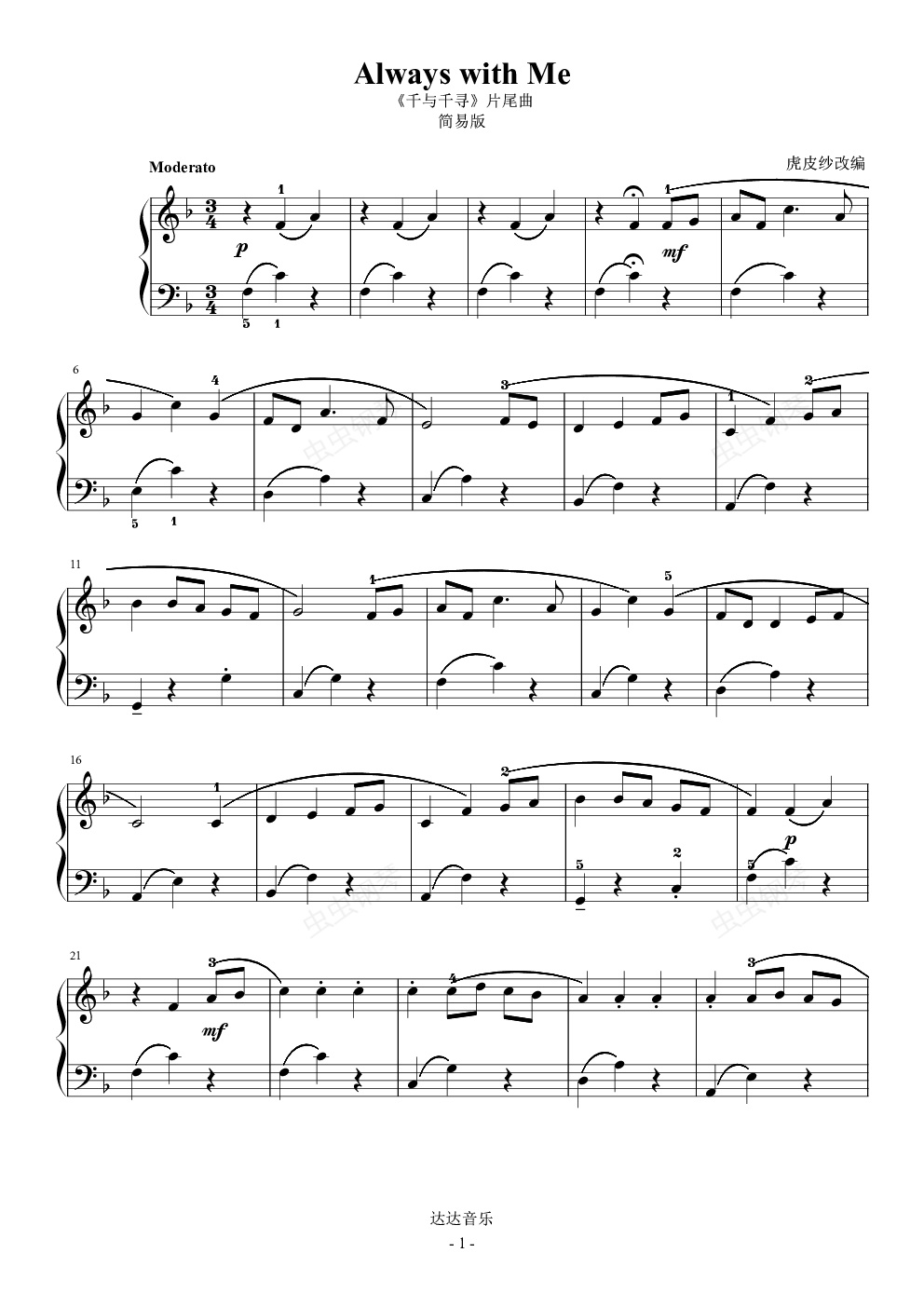 钢琴谱:always with me千与千寻片尾曲(简易版)