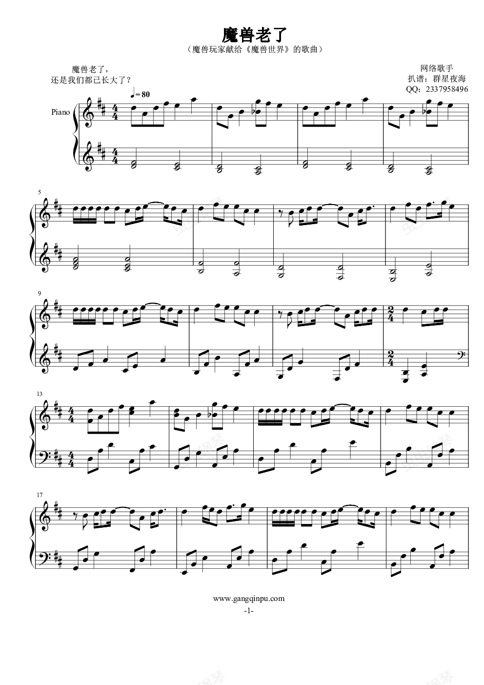 钢琴谱:魔兽老了 - 魔兽玩家献给《魔兽世界》的歌曲