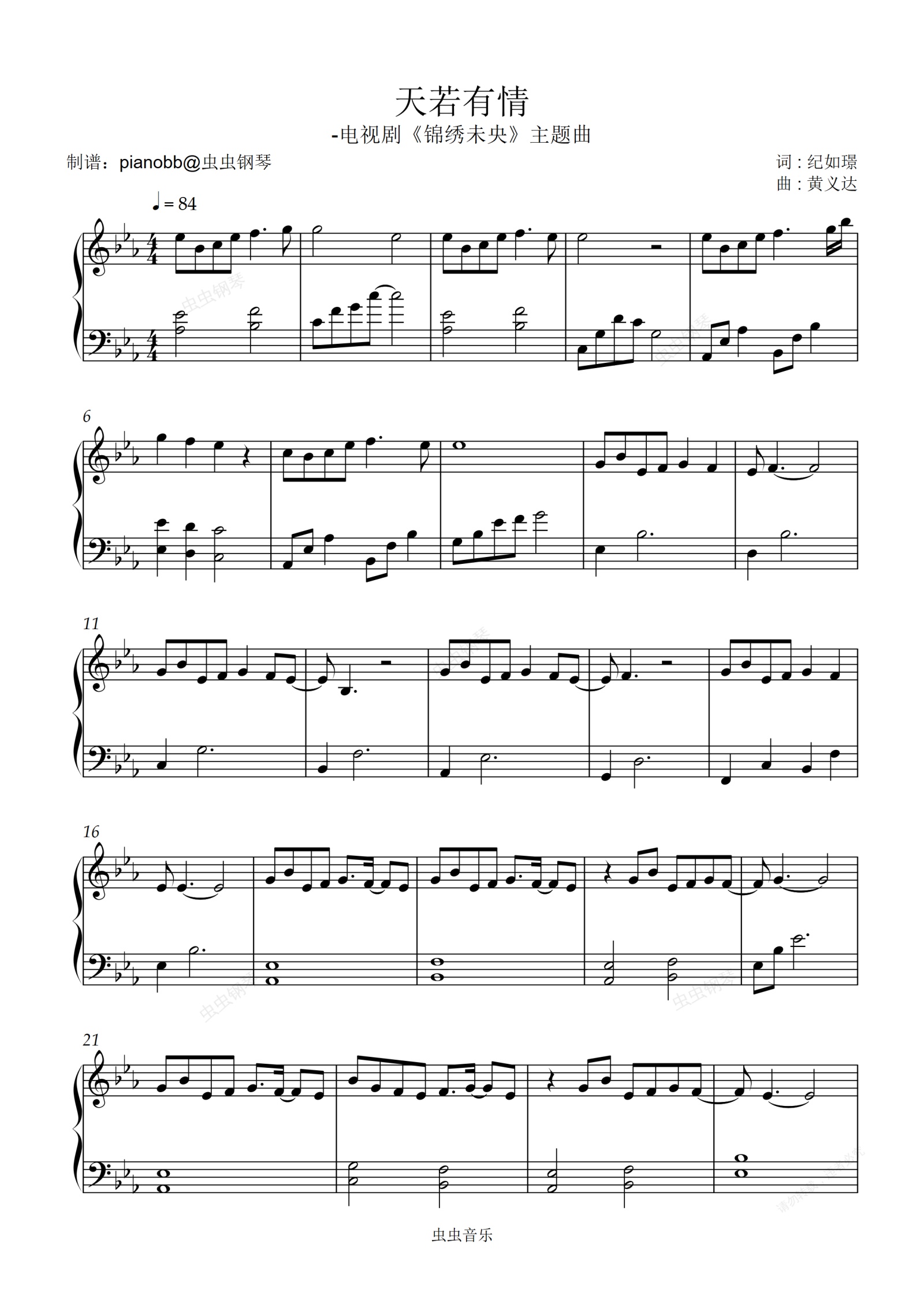 钢琴谱:天若有情-电视剧《锦绣未央》主题曲