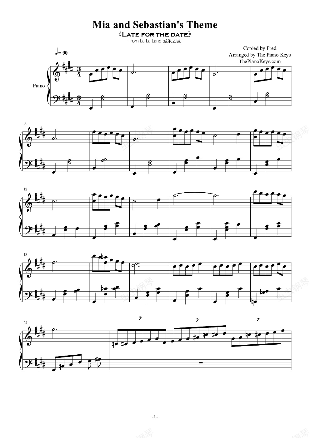 [IMG]/pu/2017/2/4/__9665_13545_[/IMG] 又名Late for the date,出自《爱乐之城La La Land》原声音乐 即将国内上映,网易云音乐评论区预测此曲年后必大火... 因此找了下扒谱达人的作品搬运过来,填补空缺 自认为这一版本是现有谱面中最完美的一版 非原创,已注明出处为 至于结尾为什么戛然而止,不为什么,因为原声音乐就是这样...