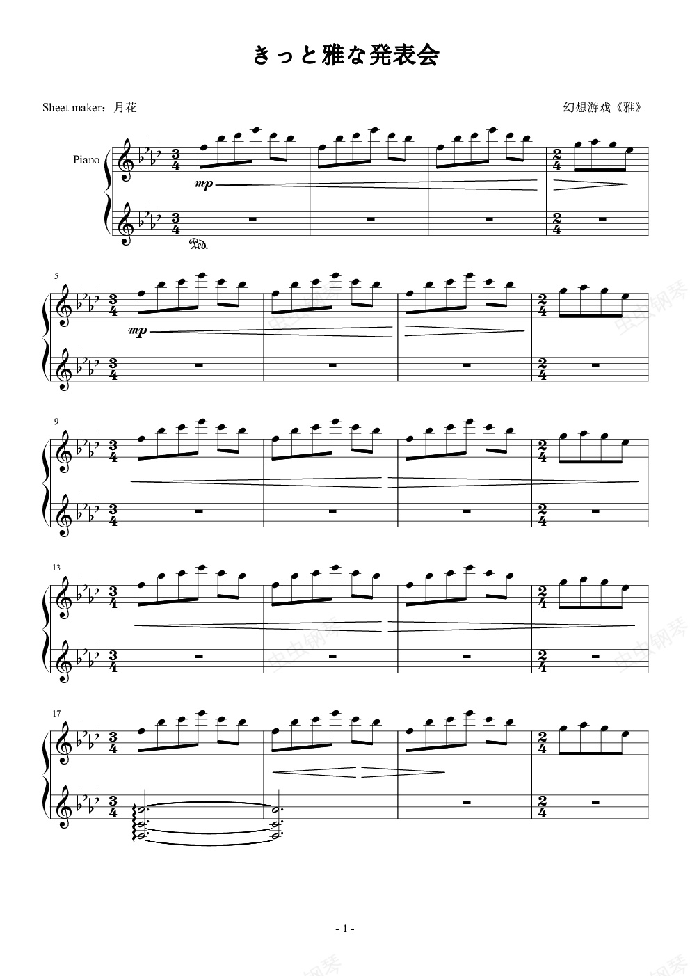 钢琴谱:触手猴 幻想游戏《雅》きっと雅な発表会