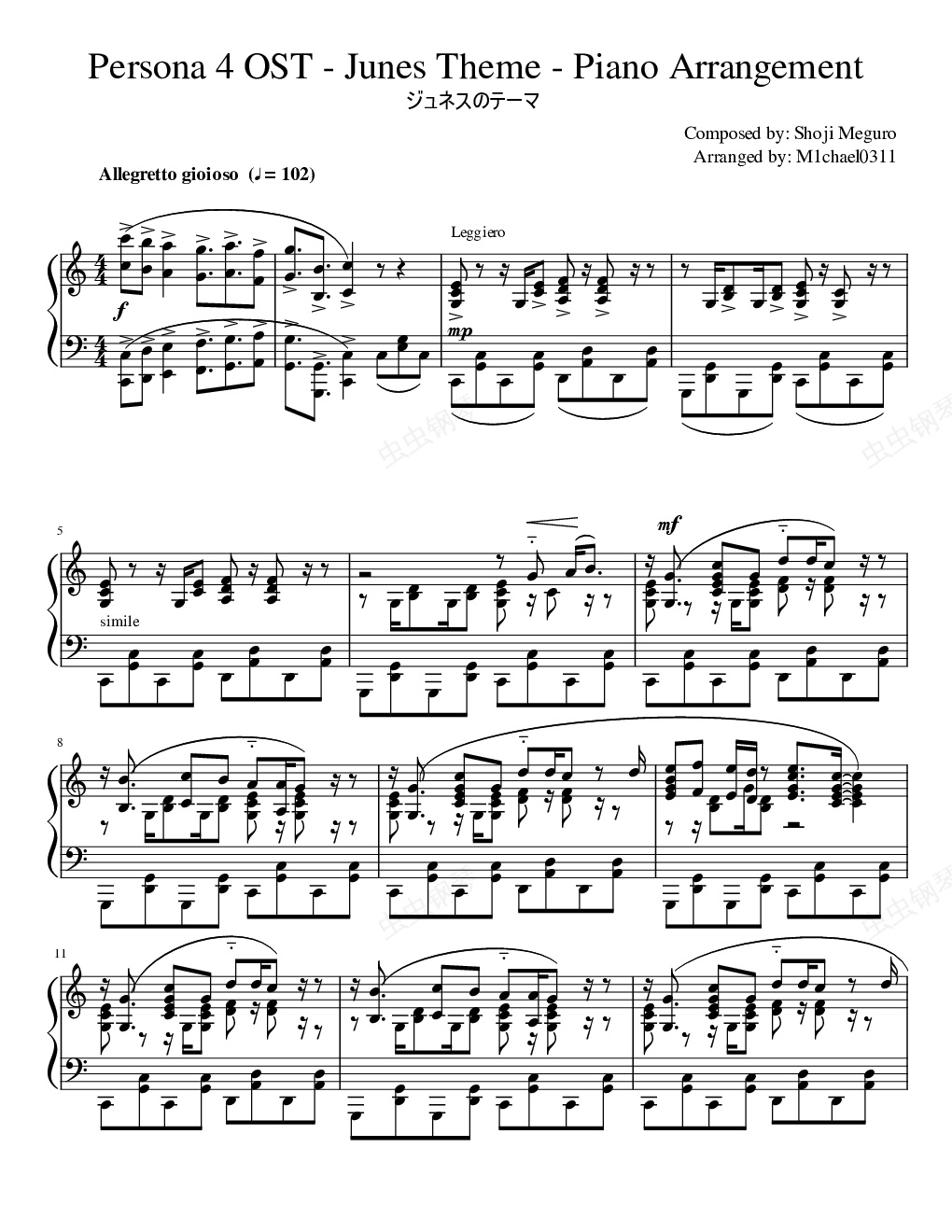 钢琴谱:女神异闻录4 Persona 4 EVERYDAY~YOUNG LIFE!JUNES!~