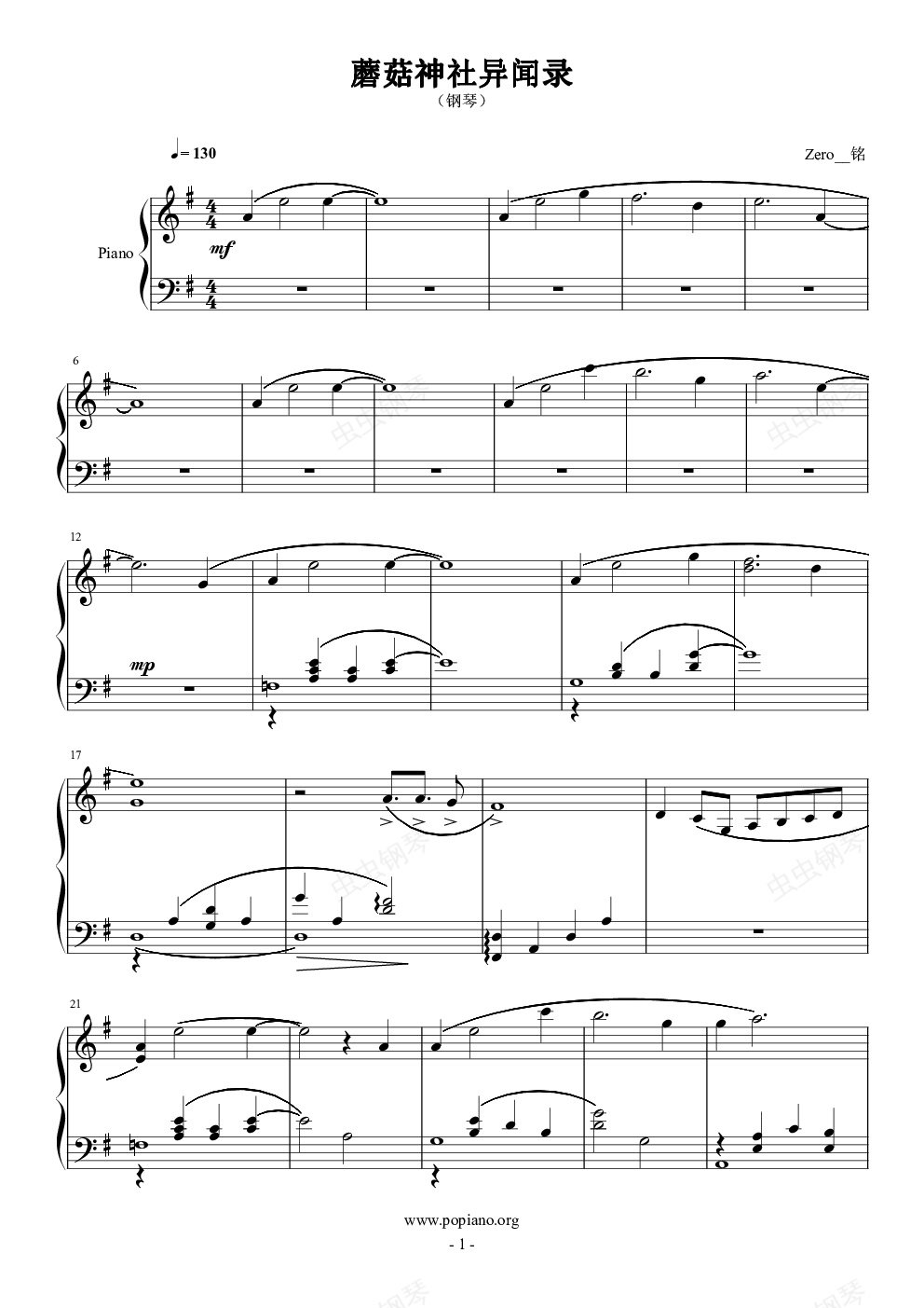 钢琴谱:冒险岛—蘑菇神社异闻录(钢琴)