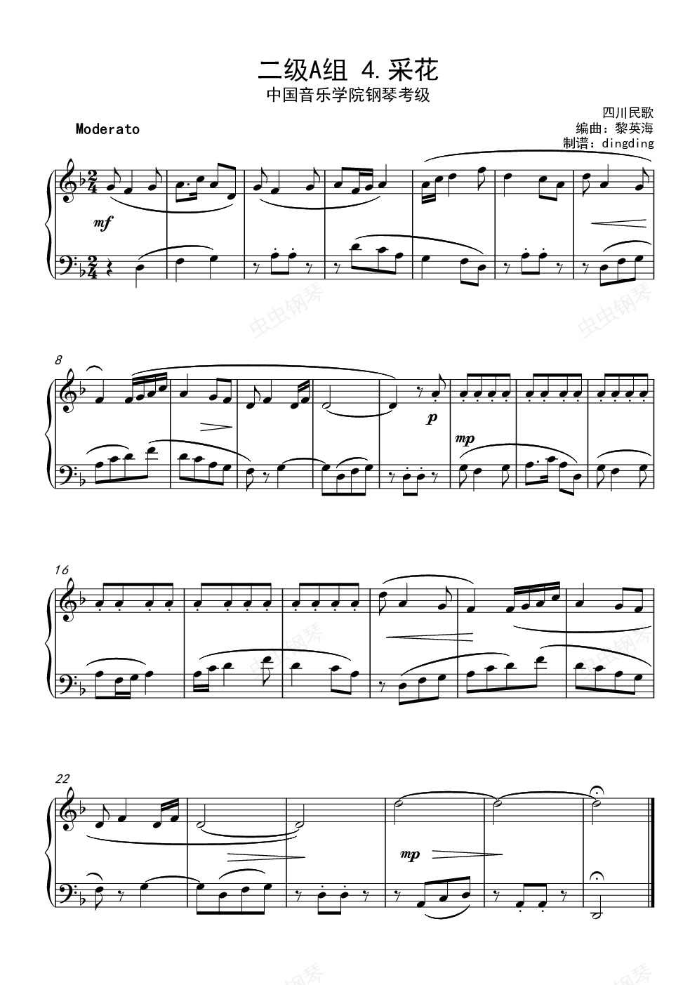 钢琴谱:中国音乐学院考二级A组 4.采花