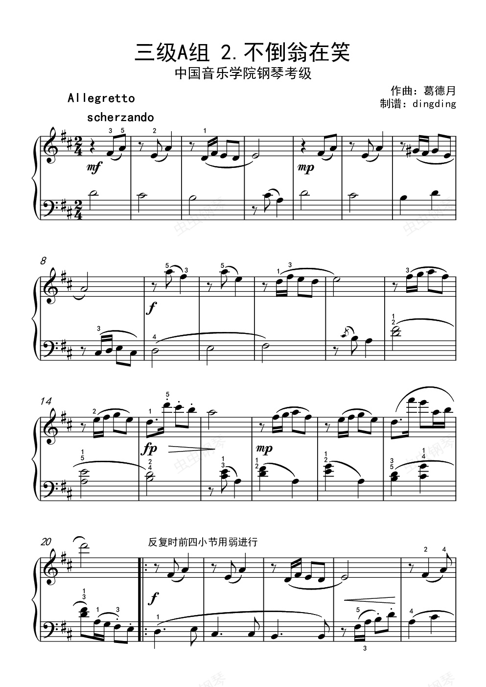 钢琴谱:中国音乐学院考级三级A组 2.不倒翁在笑