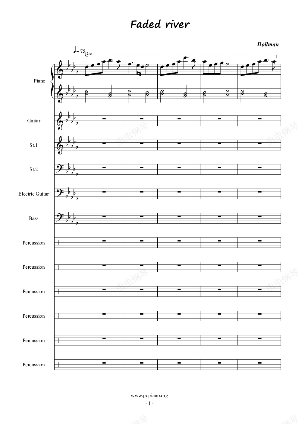 钢琴谱:Faded river