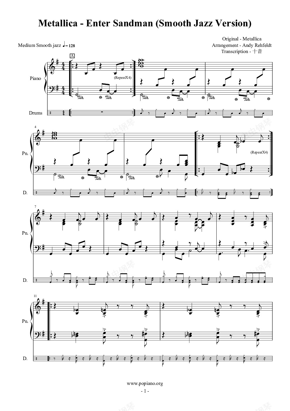 钢琴谱:Metallica - Enter Sandman 爵士版