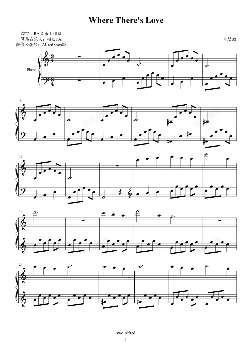钢琴谱:Where There's Love