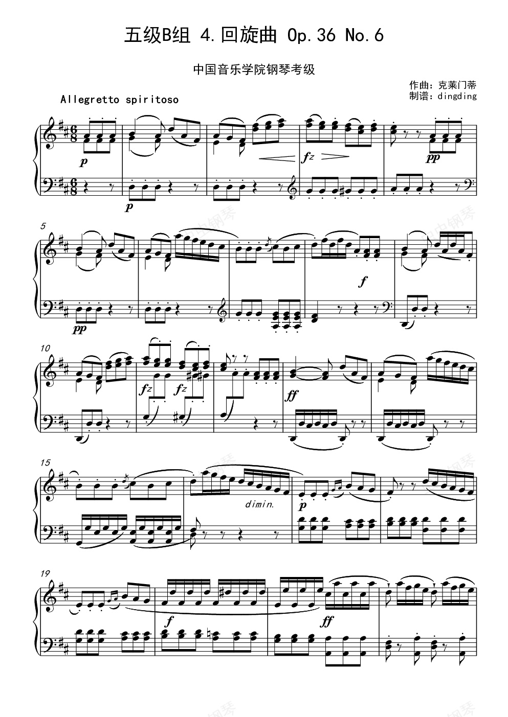 钢琴谱:中国音乐学院考级五级B组 4.回旋曲 Op.36 No.6