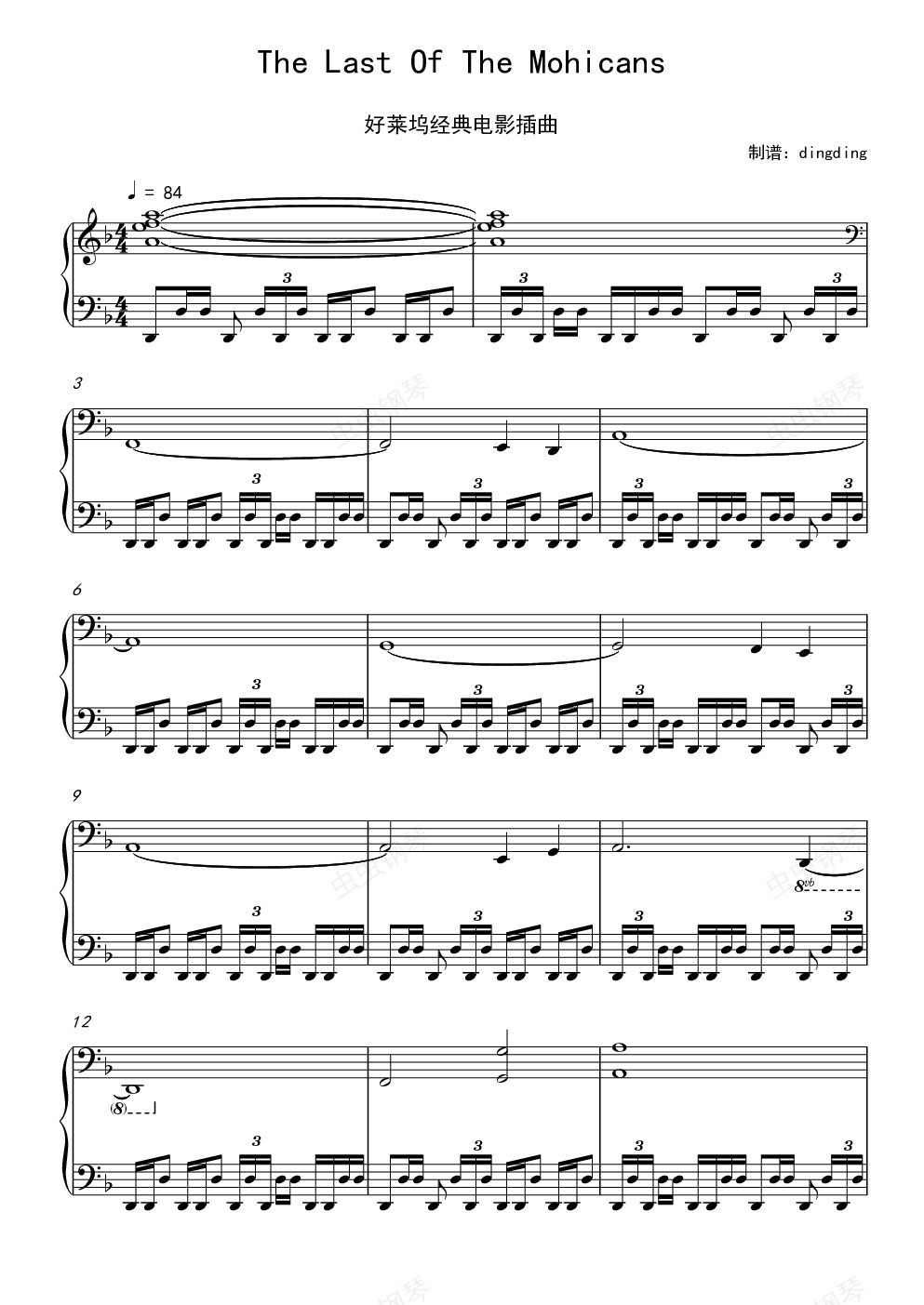 钢琴谱:The Last Of The Mohicans好莱坞经典电影插曲