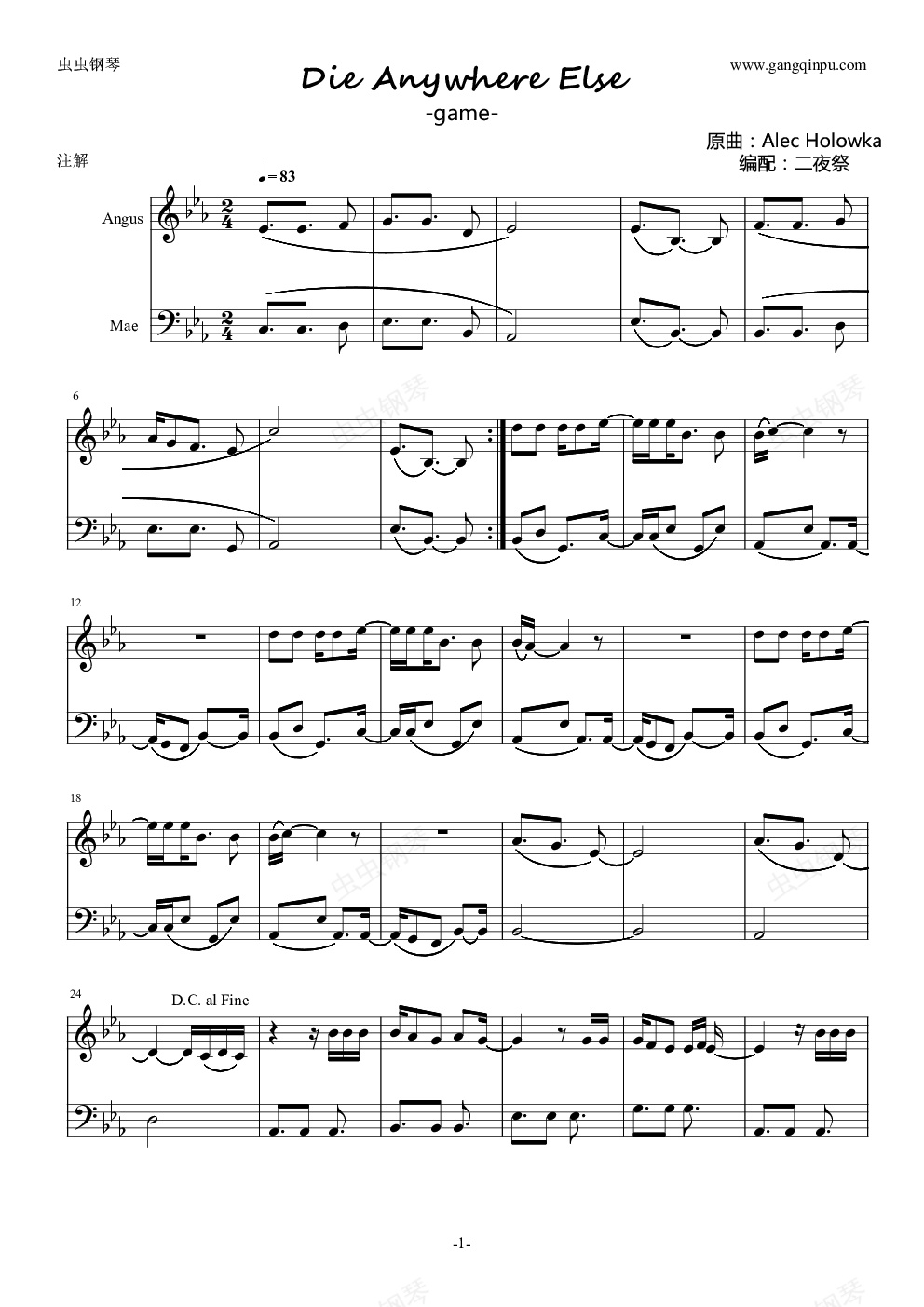 钢琴谱:【林中之夜】Die Anywhere Else -game-