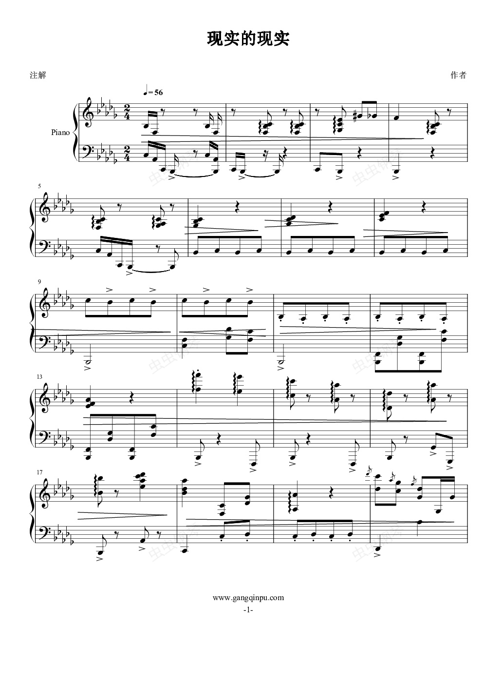 钢琴谱:现实的现实
