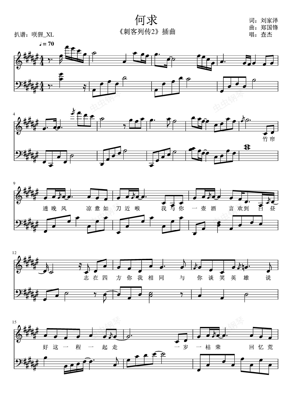 钢琴谱:何求 - 刺客列传2插曲