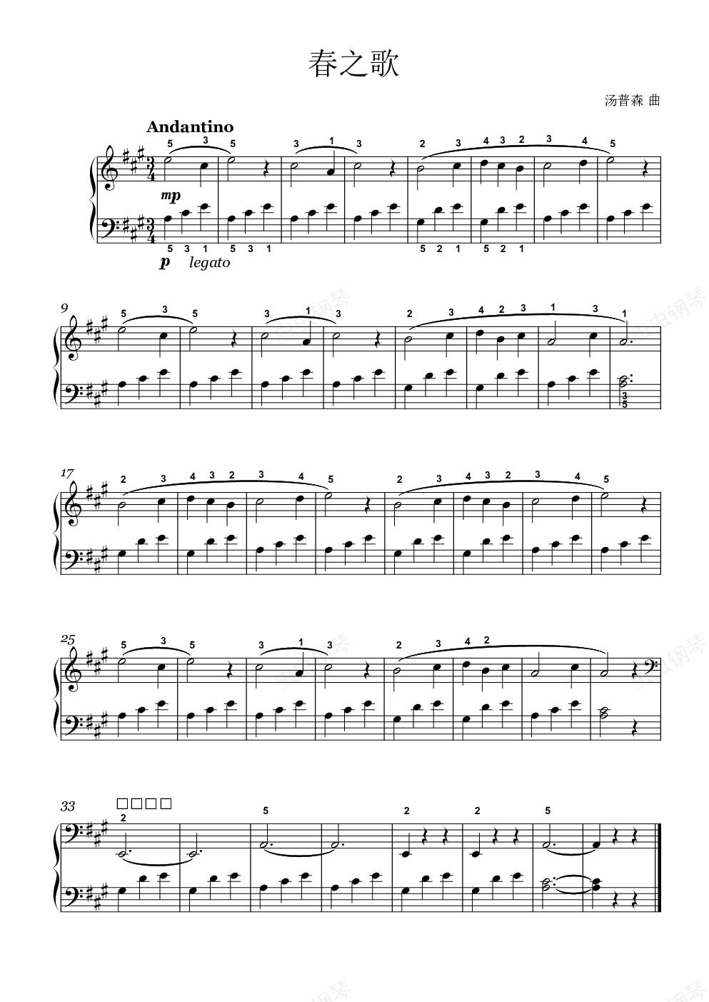 钢琴谱:春之歌
