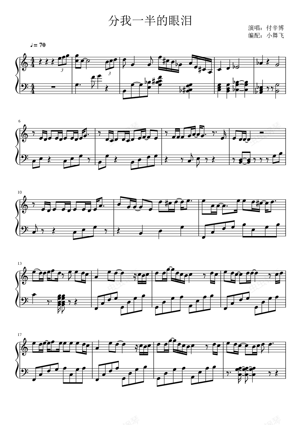 这是《寻找前世之旅》这部剧的主题曲,本人也比较喜欢,看网上没有钢琴谱,也有很多再找这首歌的琴谱,我就编配这个版本,后续也会发布更好的版本,谢谢 难道爱真的是一念之差 是快乐是惩罚是造化 命运怎么回答都不害怕 不死心不逃避就足够吗 不说任何绝情的话 看你为谁泪如雨下 还要承受吗 分我一半的眼泪 我也明白那是什么滋味 何必要撕心裂肺 显得我更加卑微 分我一半的眼泪 每段回忆都会把心撕碎 感情都浪费 孤独一生结尾 分我一半的眼泪 我也明白那是什么滋味 何必要撕心裂肺 显得我更加卑微 分我一半的眼泪 每段回忆都会把心撕碎 伤心能自醉不想清醒被摧毁 难道这一生的机会 都已经作废 爱已面目全非 我偏要作对 你付出炽热的眼泪 全部的温度留给谁 滴在我冰冷的墓碑 分我一半的眼泪 我也明白那是什么滋味 何必要撕心裂肺 显得我更加卑微 分我一半的眼泪 每段回忆都会把心撕碎 伤心能自醉不想清醒被摧毁 难道这一生的机会 都已经作废 爱已面目全非 我偏要作对 你付出炽热的眼泪 全部的温度留给谁 滴在我冰冷的墓碑 -