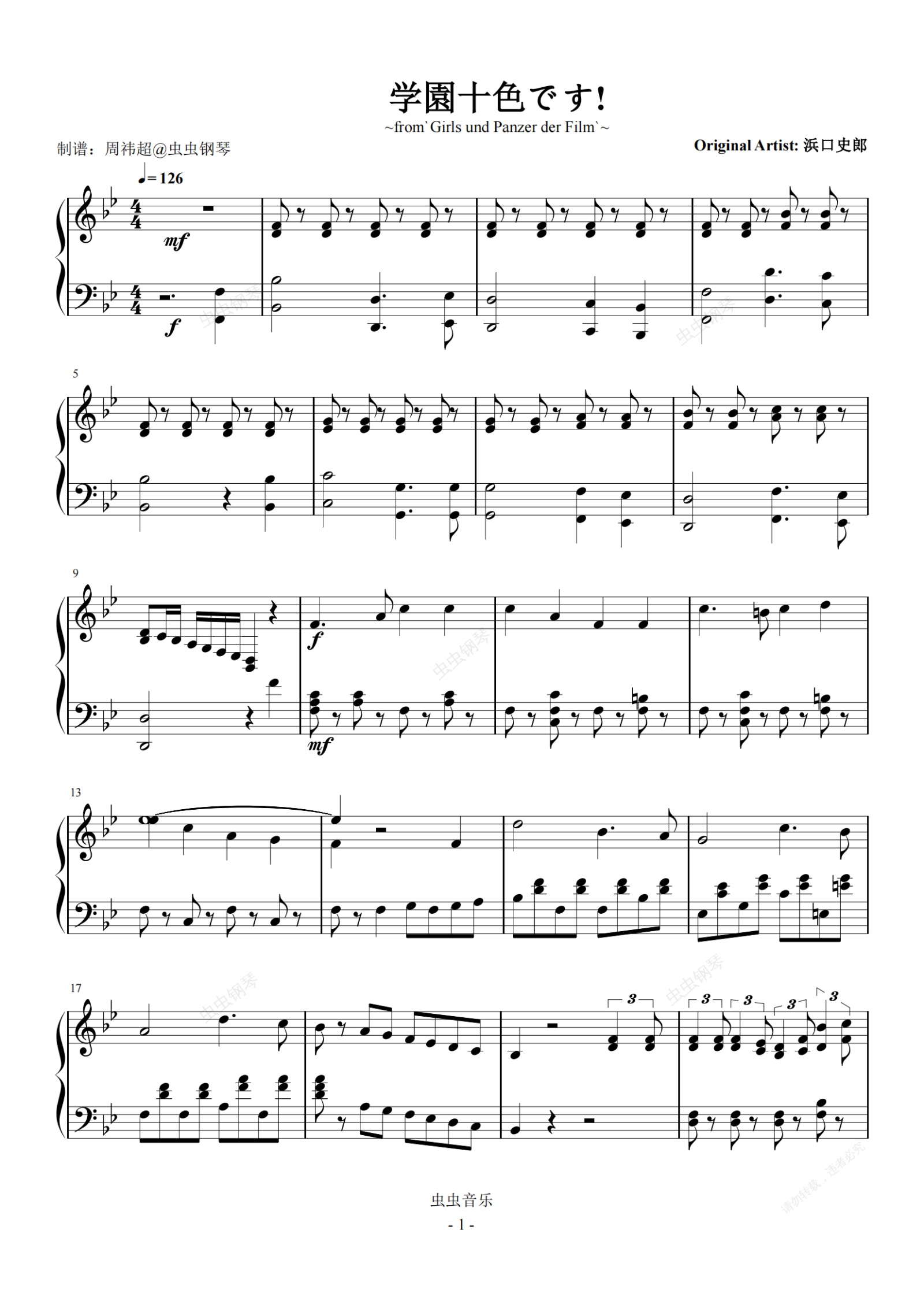 钢琴谱:学園十色です![少女与战车 剧场版 BGM]