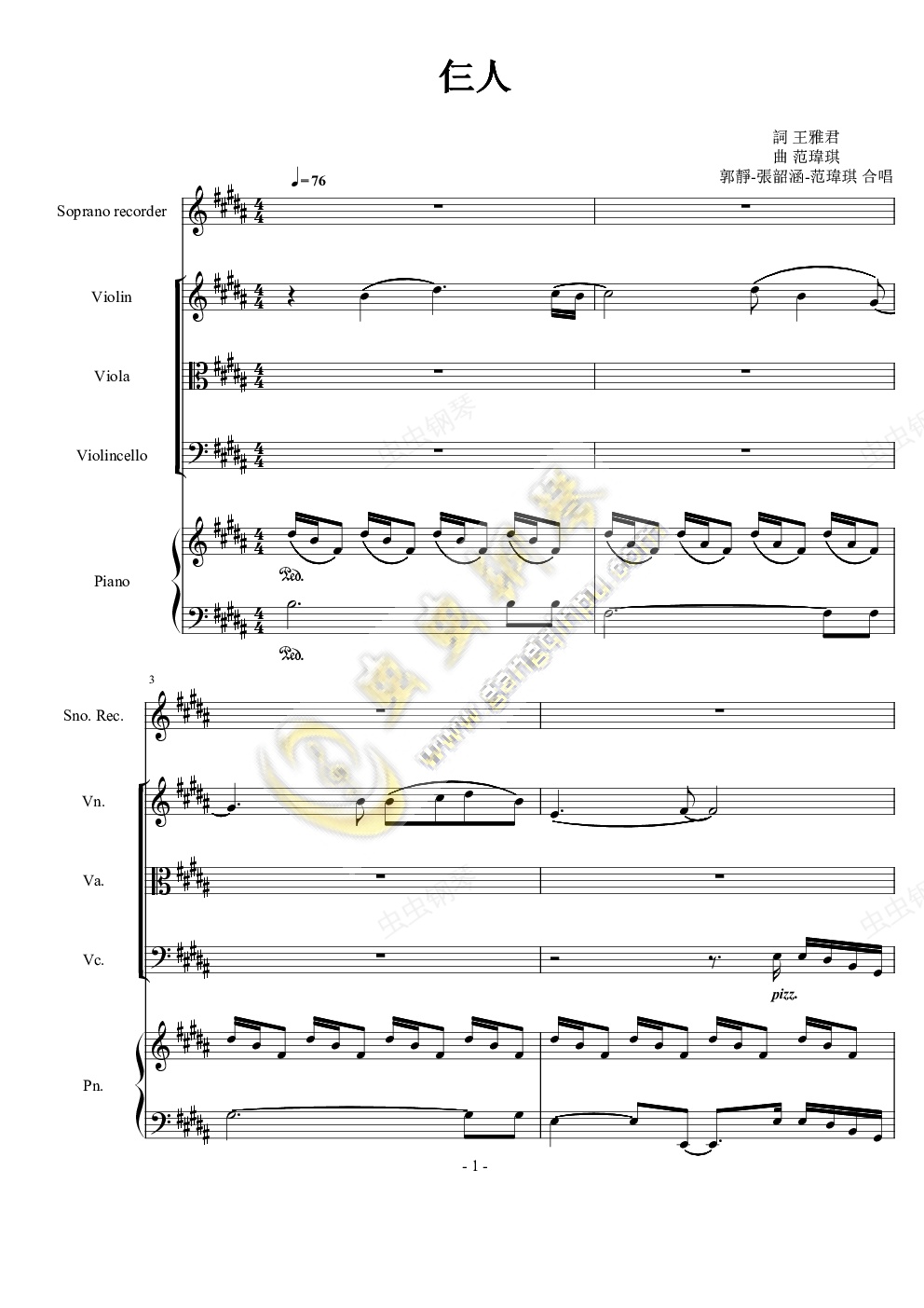 钢琴谱:仨人