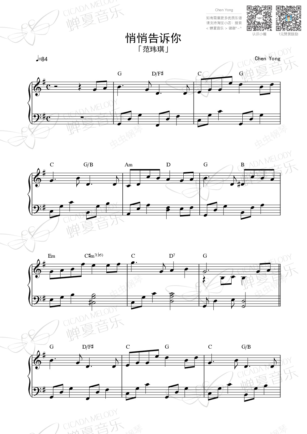 钢琴谱:<悄悄告诉你>
