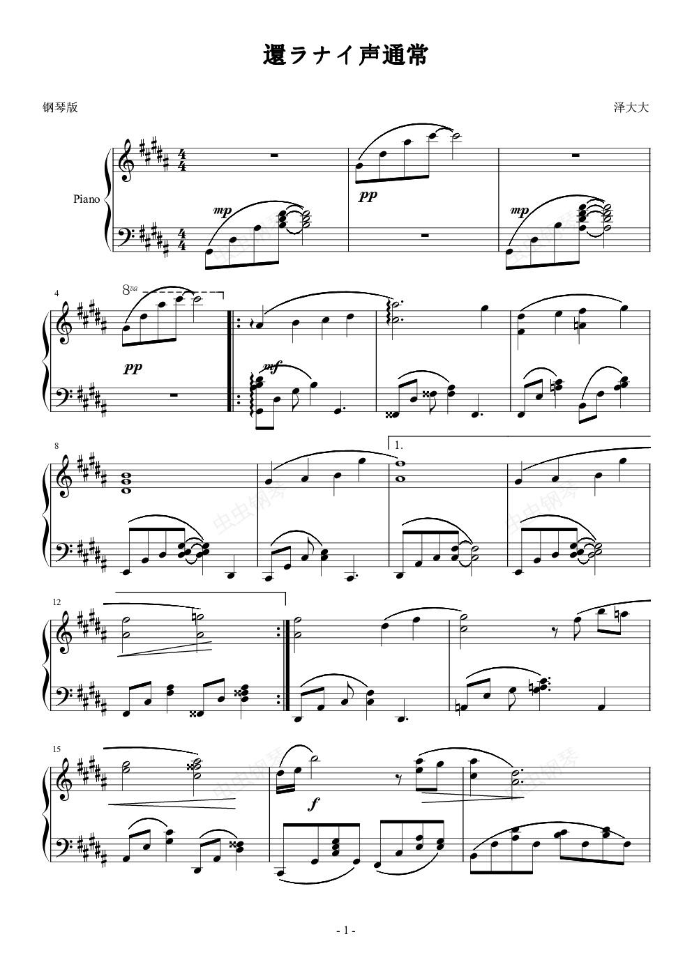 钢琴谱:voice of no return(尼尔机械纪元)