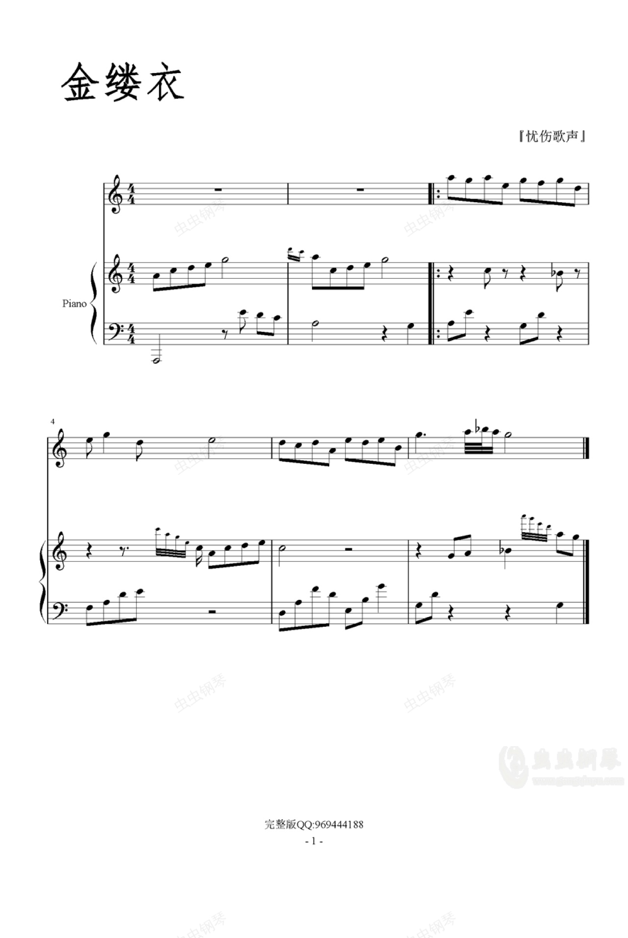 钢琴谱:金缕衣——『忧伤歌声』
