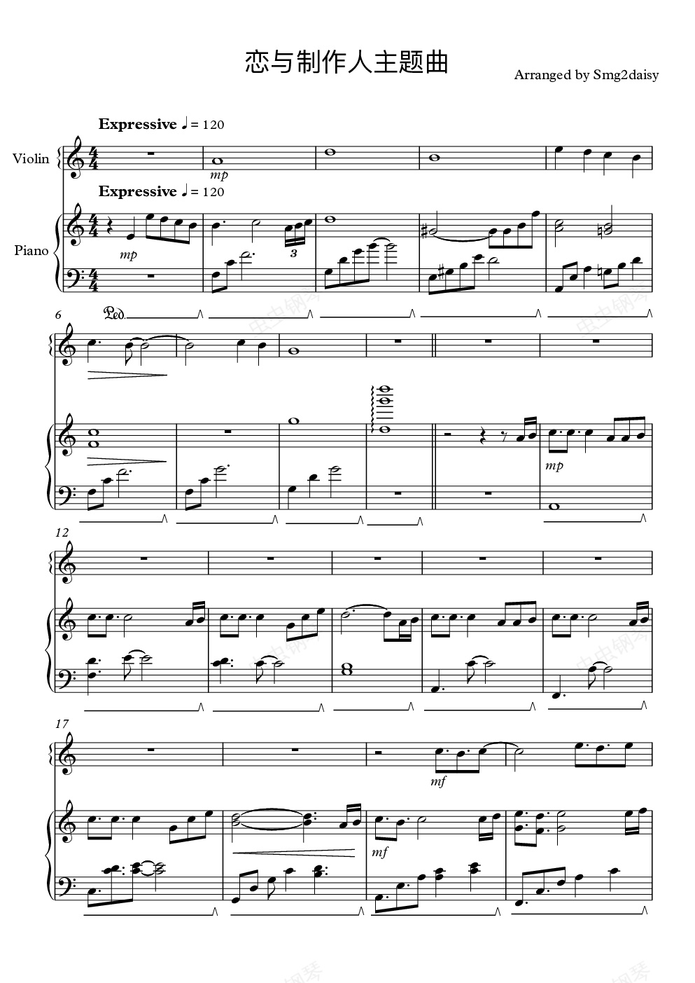 钢琴谱:恋与制作人主题曲(钢琴 小提琴合奏)