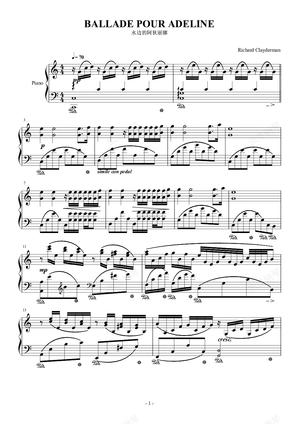 《水边的阿狄丽娜》(法文名 pour,原名:给爱德琳的诗)是由保罗·塞内维尔所作,理查德·克莱德曼演奏的乐曲。1990年,理查德·克莱德曼以演奏作曲家兼经纪人奥利维尔·图森改编版的《给爱德琳的诗》获得唯一的金钢琴奖。