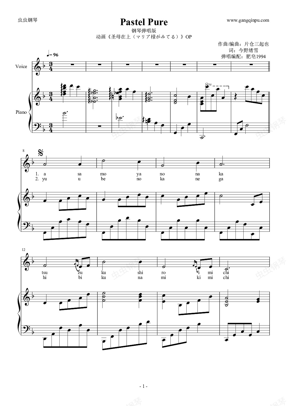 钢琴谱:《圣母在上》Pastel Pure 弹唱版