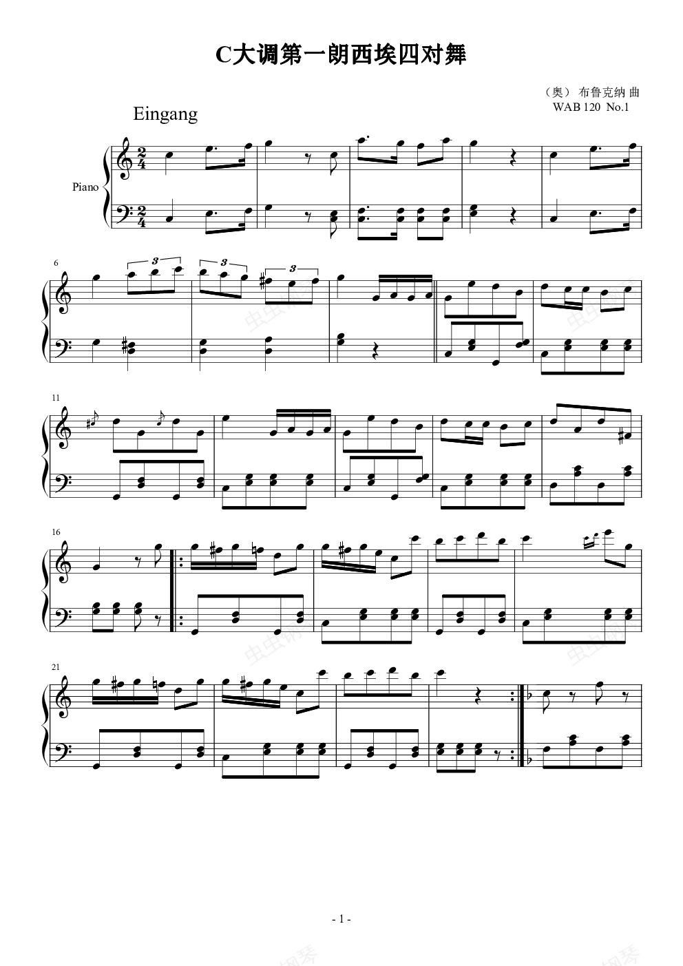 钢琴谱:布鲁克纳 C大调四对舞 WAB120 No.1