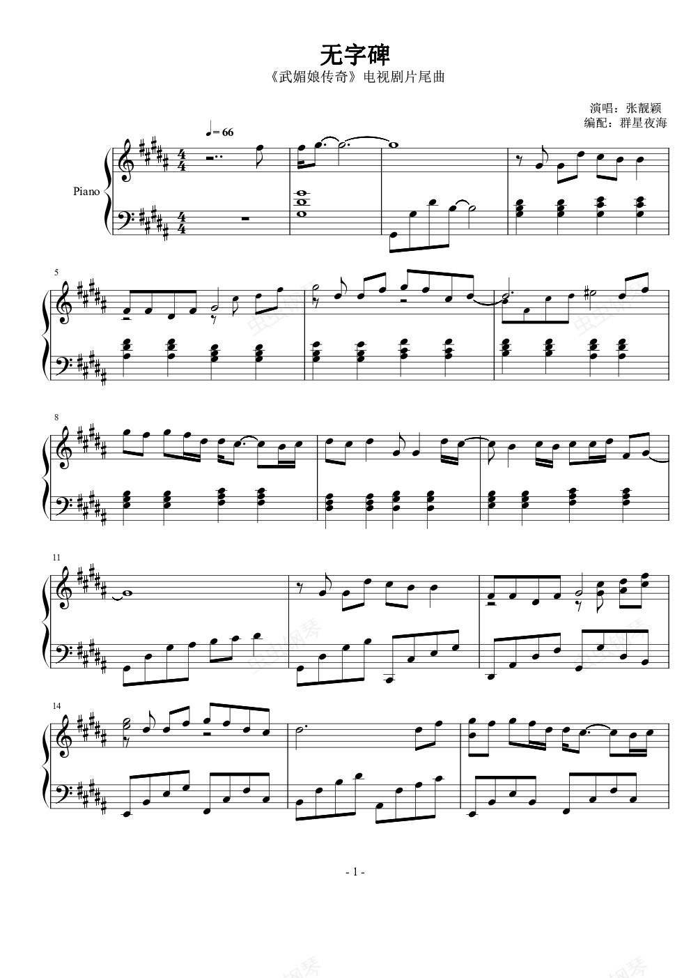 钢琴谱:无字碑(完整版)- 《武媚娘传奇》片尾曲
