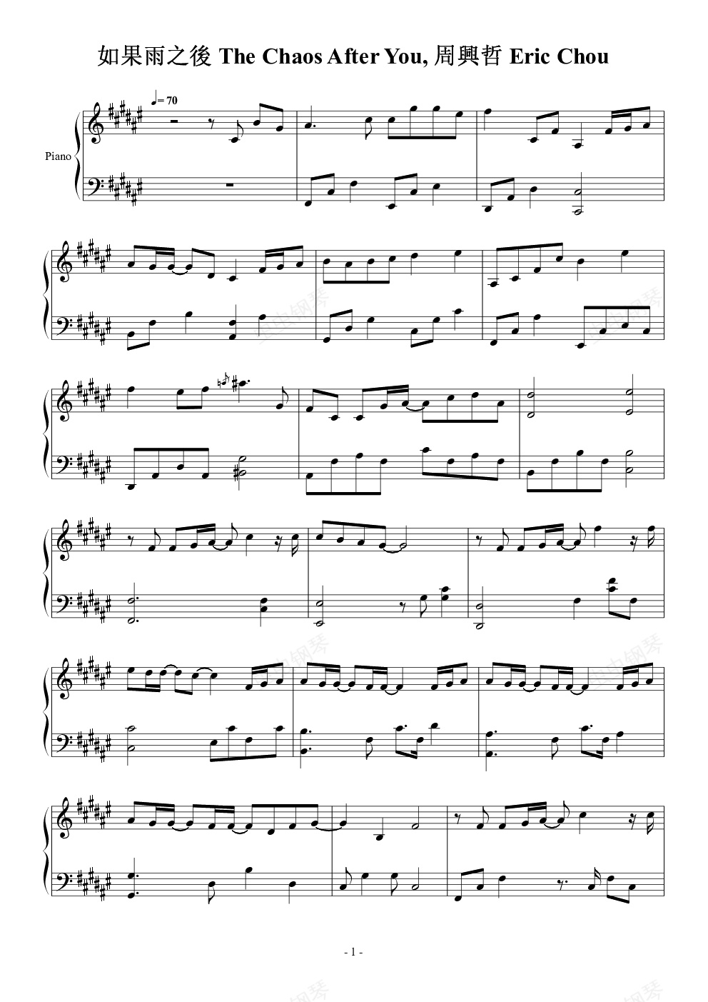 钢琴谱:如果雨之后